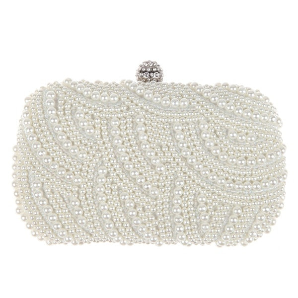 Fashion Luxury Crystal Pearl White Evening Clutch Bags Women Elegant Minaudiere Handbag Wedding Party Lady Purse Bag Hot Selling