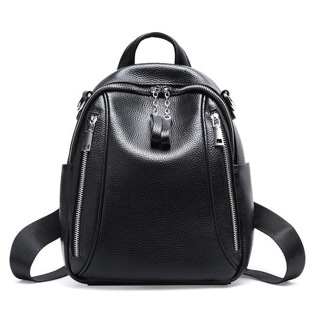 Leather backpack women luxury brand new fashion first layer cowhide large capacity soft face backpack double zipper travel bag