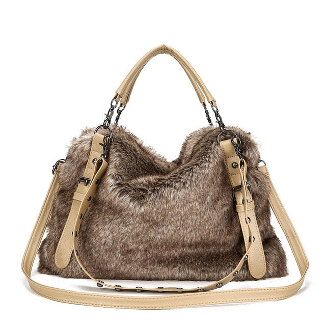 Model Number: B491 Winter Faux Fur Rivet Shoulder Bag